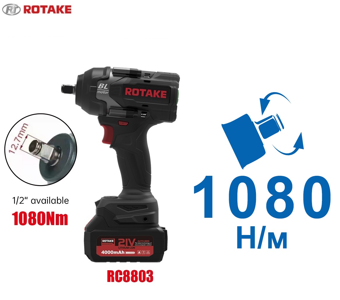 ROSSVIKГайковерт аккумуляторный ROSSVIK RIW-1000, 1/2\", 1000Nm, 21В, 1,9кг (арт.RIW1000/1, 1 АКБ, ЗУ, кейс) в наличии В корзину