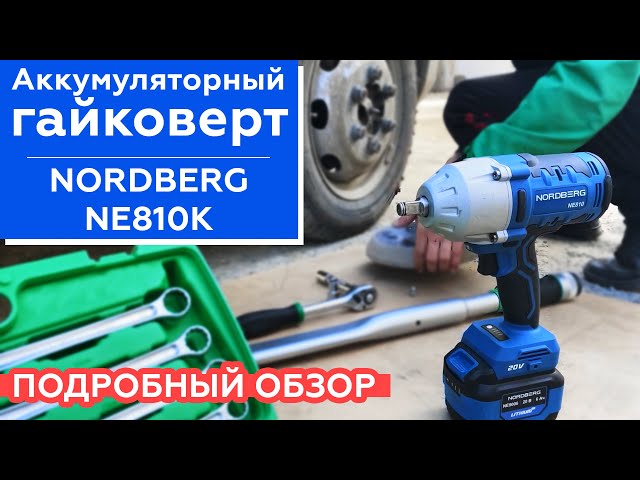 Аккумуляторный гайковерт NORDBERG NE810K для закручивания/откручивания болтов и гаек с помощью крутящего момента передаваемого с ударной головки. Бесщеточный мотор позволяет инструменту работать дольше
